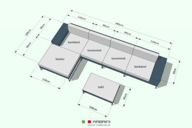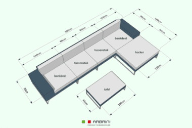 - 2 x tussenstuk van 80cm x 90cm diep, ook los als stoel te plaatsen.