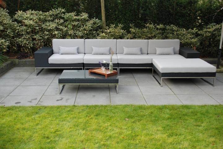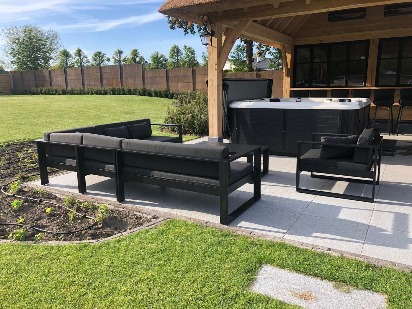 Loungeset Lineo zwart met rvs / inox onderstel wordt kosteloos geleverd en gemonteerd in de tuin geplaatst. De tuin dient dan wel op de begane grond te zijn en gemakkelijk te bereiken met een steekwagen.