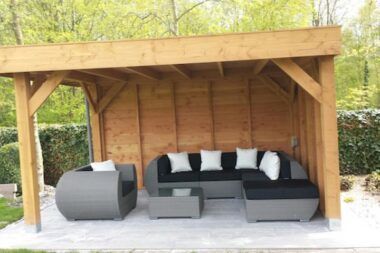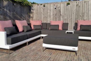 Deze 3.80m. lange lounge-bank kan sfeervol aangekleed worden met onze eigen lijn van Lazybear lounge kussens in verschillende kleuren.