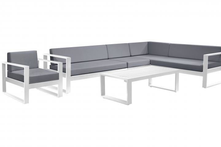 • Al onze Lineo loungesets zijn voorzien van een gemoffeld aluminium binnenwerk en een RVS onderstel.