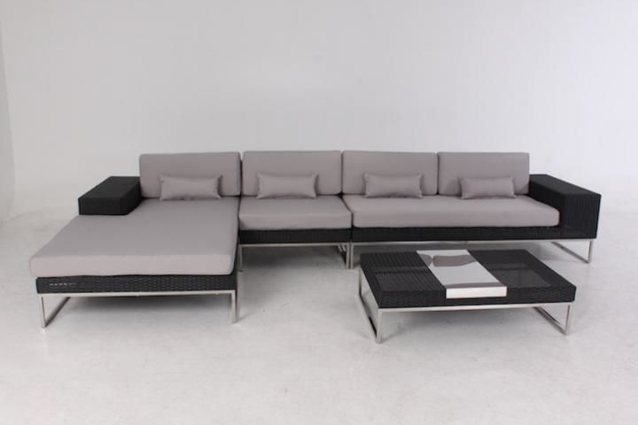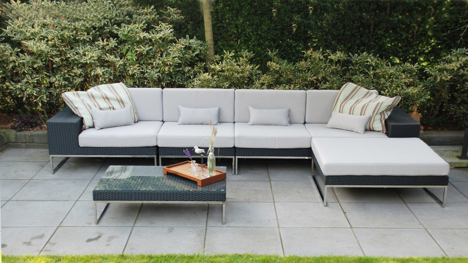 Design Loungeset Lineo zwart wicker 3.80m bestaat uit 6 losse delen: